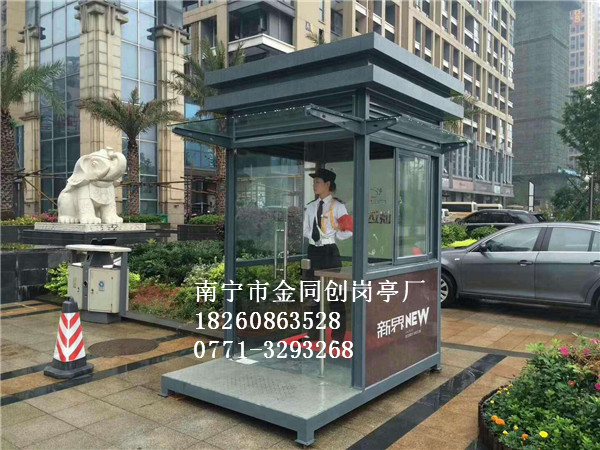 南寧市金同創交通設施有限公司具有多年生產經驗,全心致力于崗亭、售貨亭、移動衛生間等產品的研發、生產、銷售及服務。業務主要覆蓋:小區停車場,學校,醫院,工廠,市政交通收費,城市環保,景觀環境美化等領域。主要經營的產品有:售貨崗亭、移動衛生間、氟碳噴漆崗亭、不銹鋼崗亭、藝術崗亭、值班崗亭、收費崗亭、物業崗亭、金屬雕花亭、玻璃崗亭等,為廣大用戶提供便捷、可靠的安全防范設備。......[ 查看更多 ]